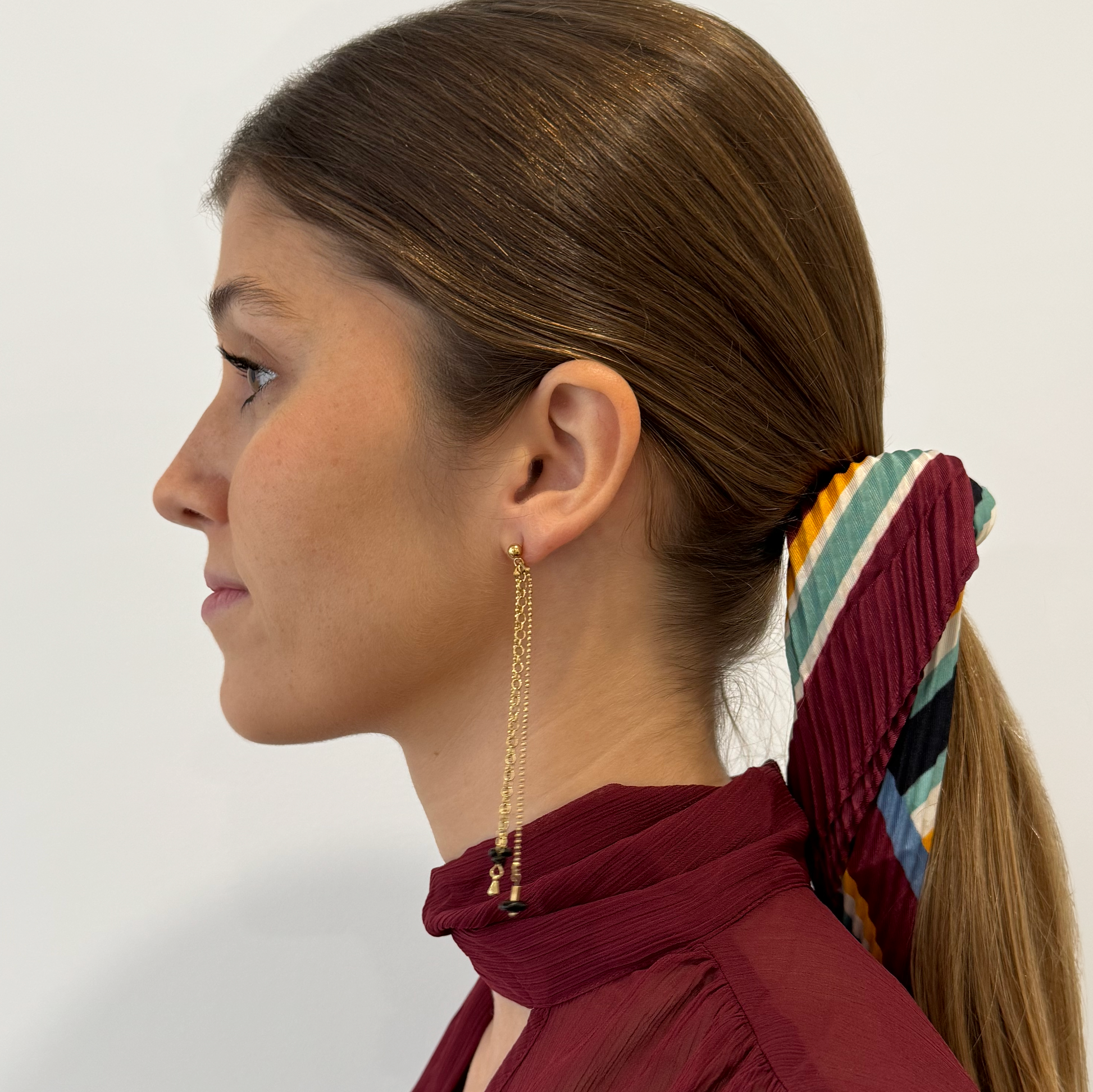 - Oro amarillo: Añade calidez al granate, creando un efecto lujoso. Un collar o pendientes de dorado con detalles en granate pueden elevar un vestido sencillo.