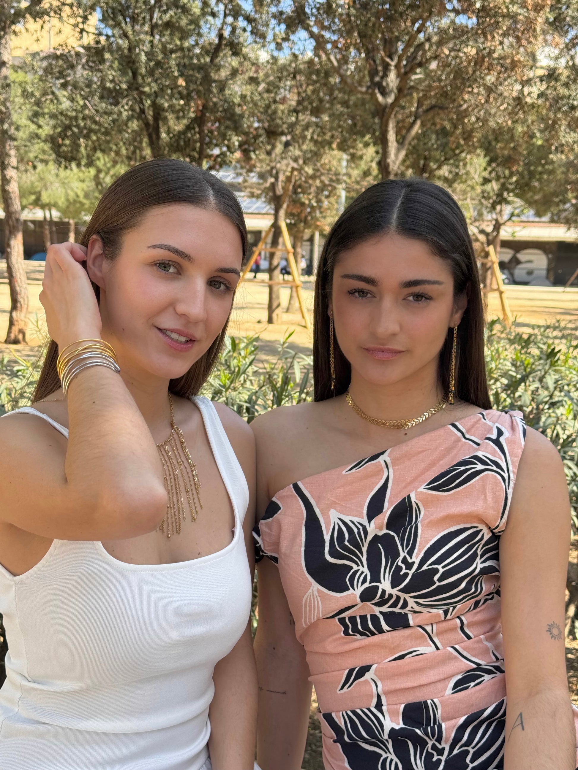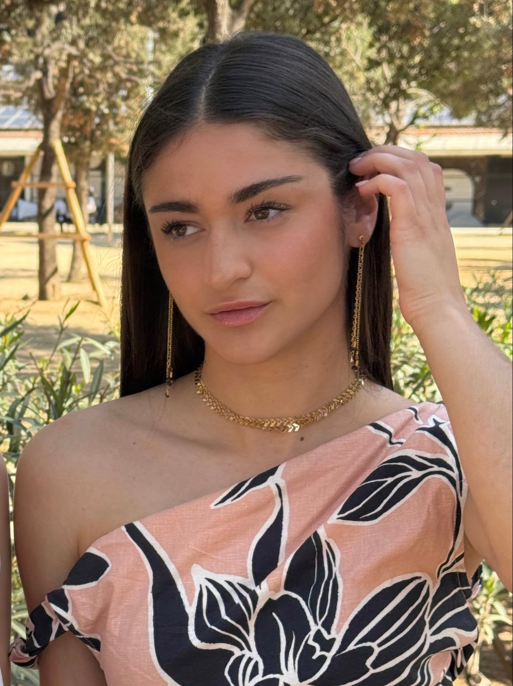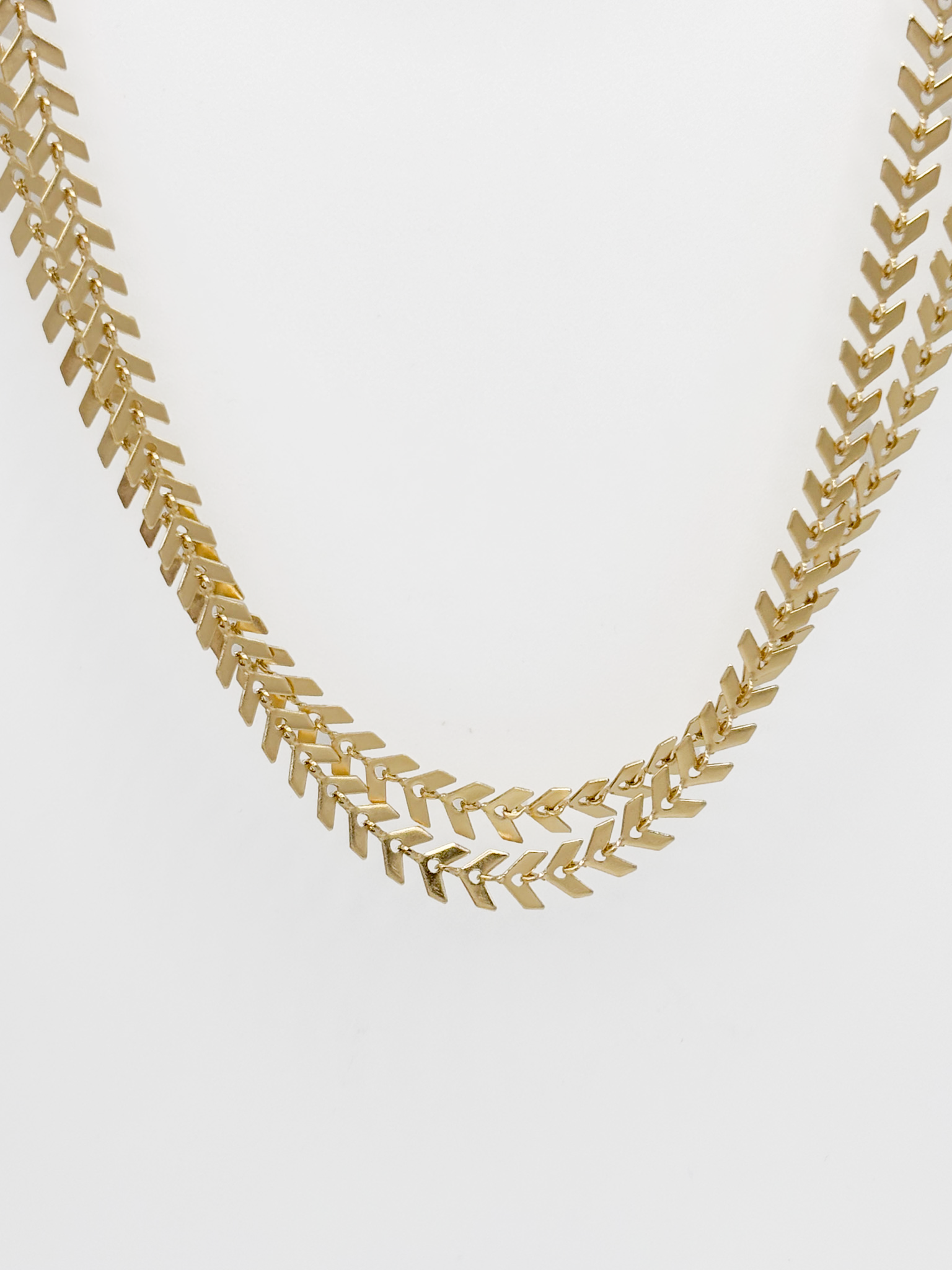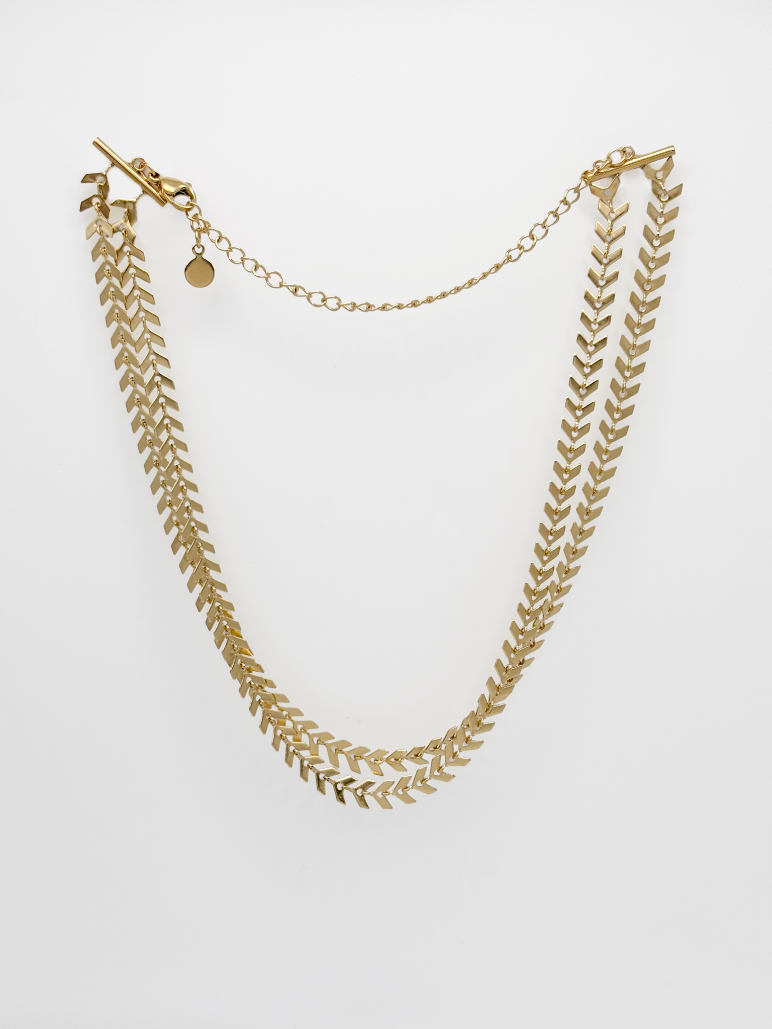 Choker dorado de eslabones en forma de espiga con doble cadena. Ajustable y sofisticado.
