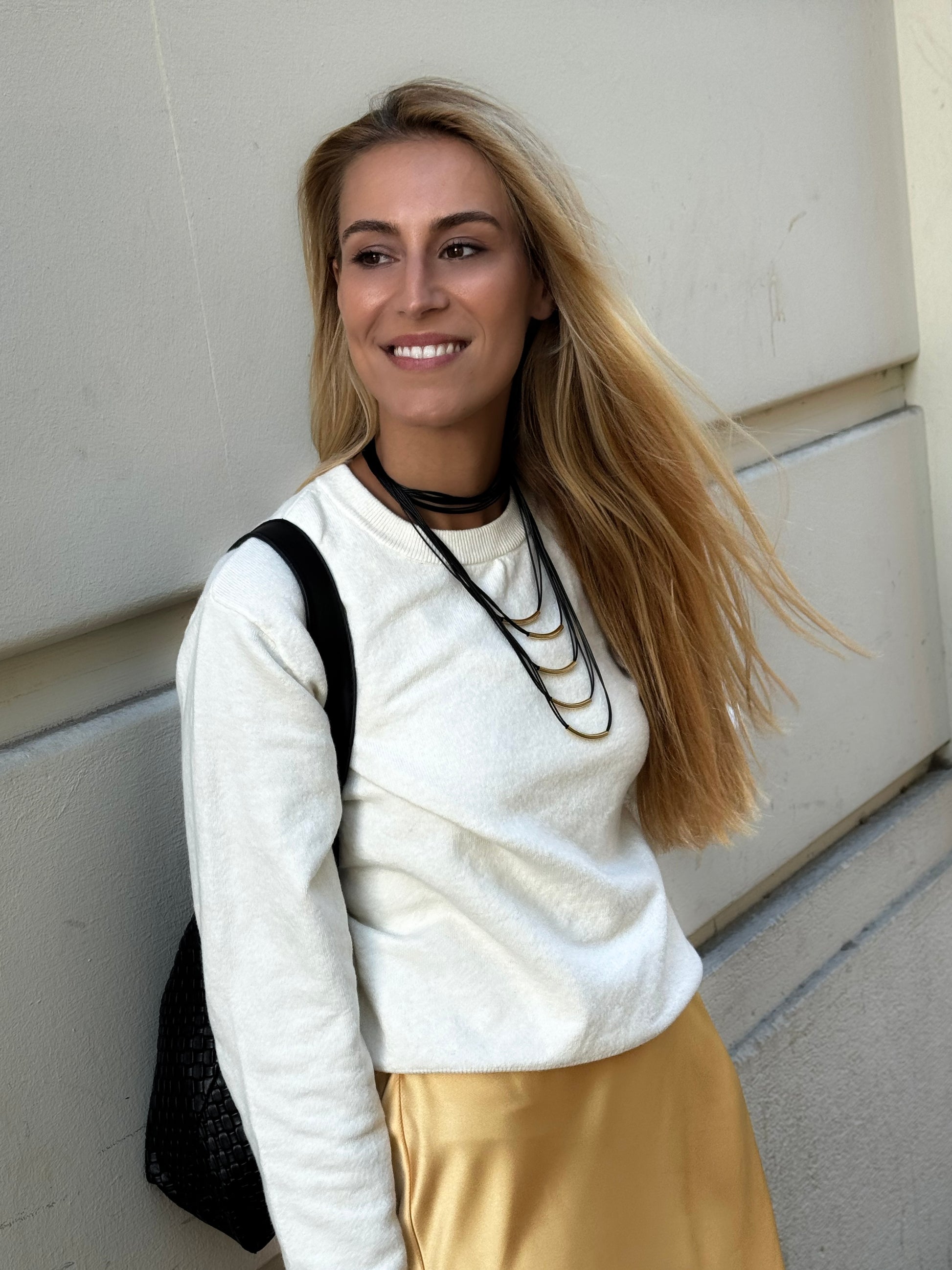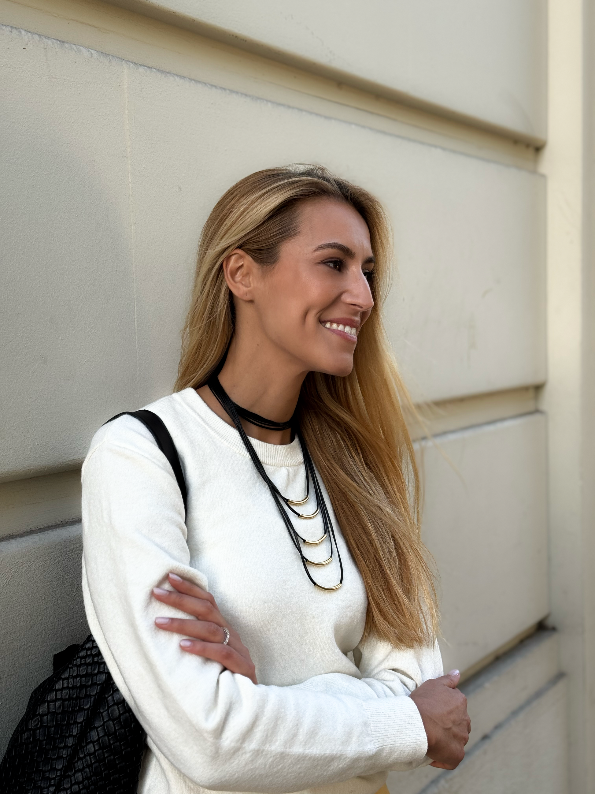 Piezas versátiles que pasan del look de oficina al afterwork sin esfuerzo, con un brillo urbano que dialoga con el metro, las luces y el skyline al atardecer.