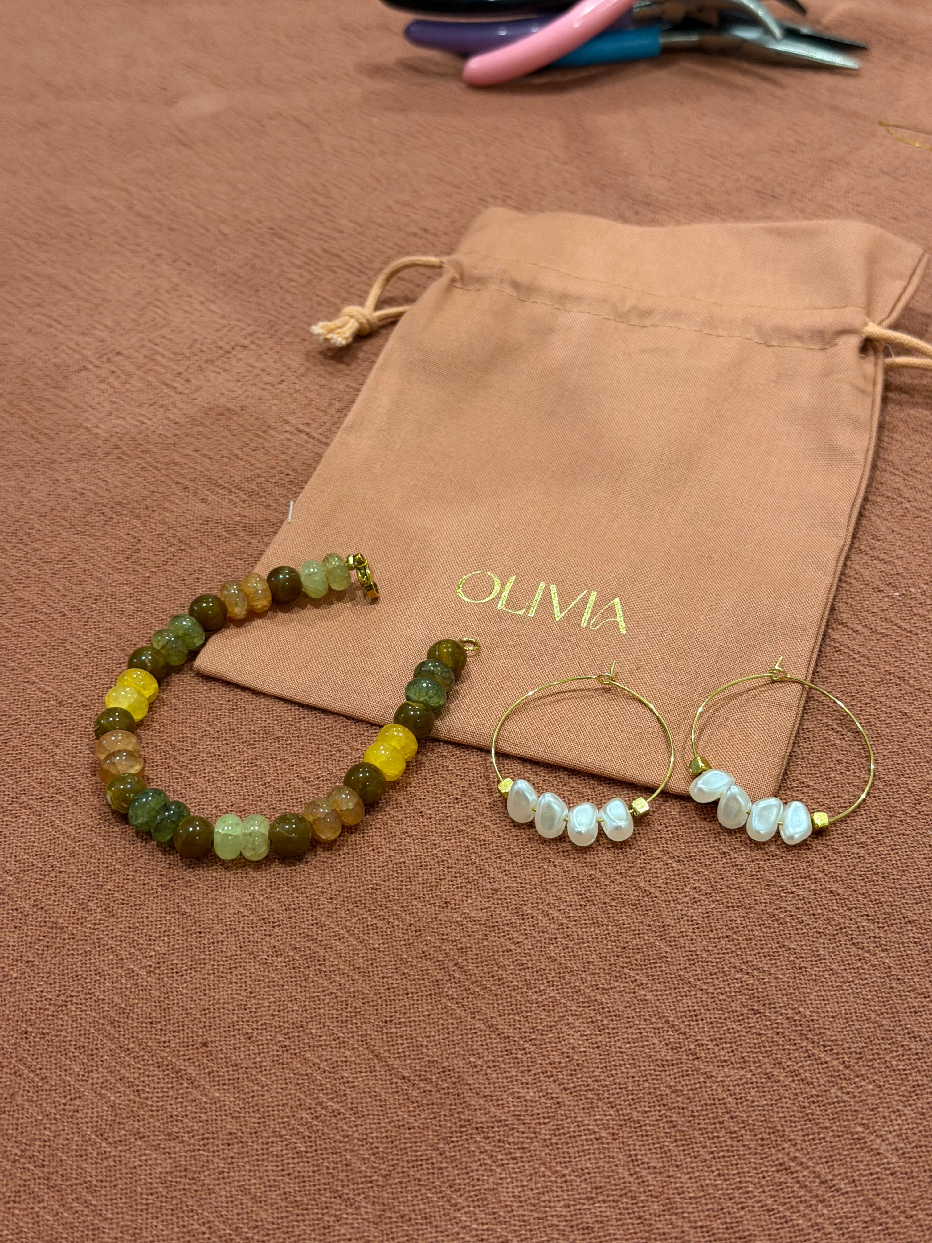 El taller tiene una duración de 2 horas, y durante ese tiempo crearás dos joyas completamente personalizadas.Podrás elegir la combinación que más te guste: