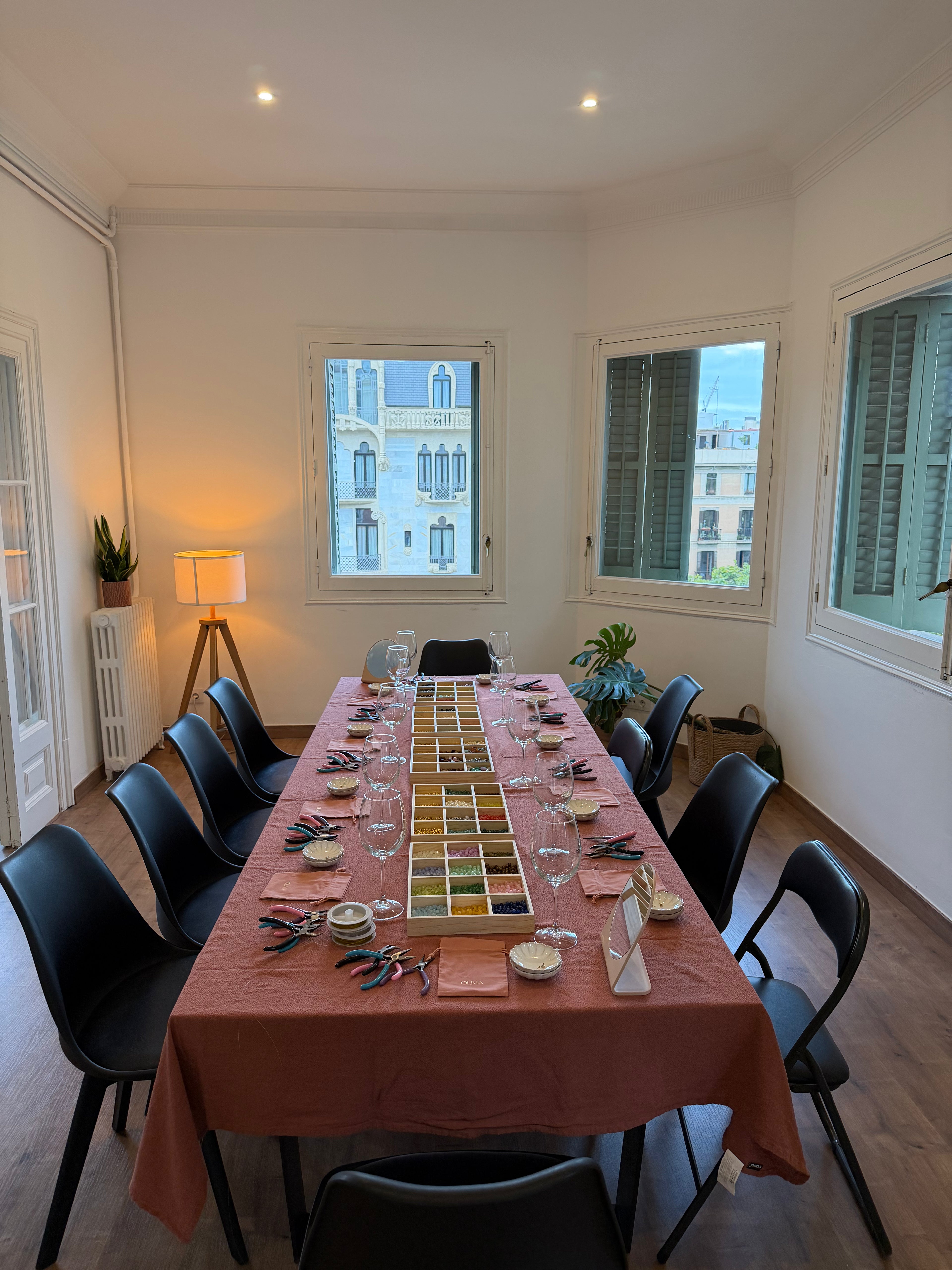 Es una experiencia creativa única: crearás tus propias joyas mientras disfrutas de vino ilimitado, rodeada de buena música, risas y un espacio increíble en pleno centro de Barcelona.